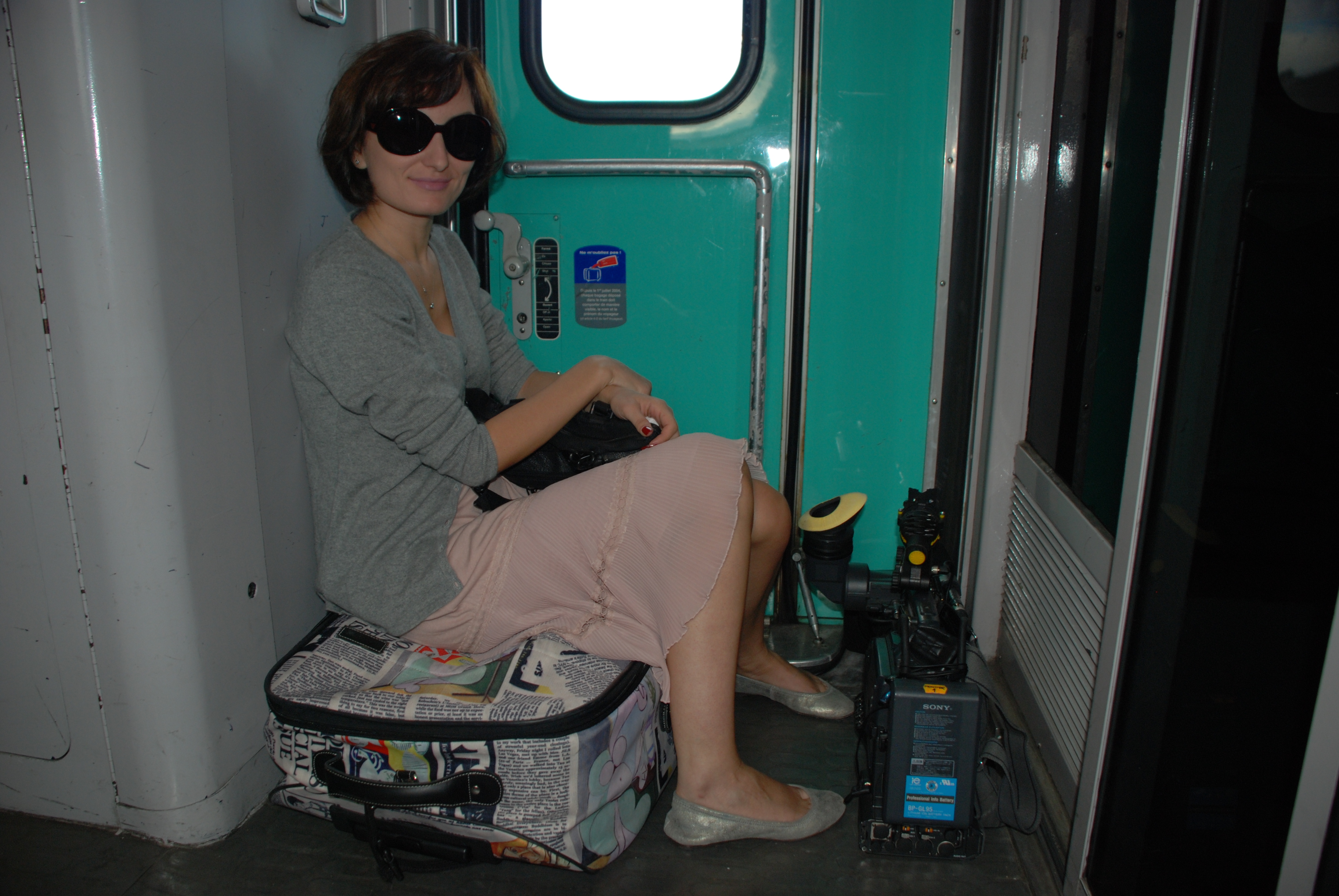 N-am mai găsit locuri in vagon şi de aceea am călătorit pe valiză.